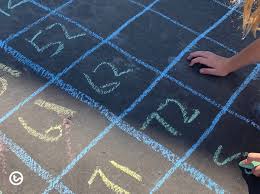 We did the maths concept on the tiles “before” and “after” and made it into a Simon says game. Stand on the tile number 39, jump on the tile before 39, now jump on the tile after 39. We had such fun. (Even my grade 5 started writing his English words on the floor tiles.)