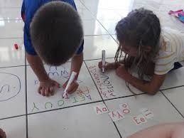 “We are going to write on the floor tiles with whiteboard markers”.