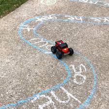 We did sounds for reading on each tile. He had to jump on the tile and read the word. We wrote sentences and drove with a car on the path to read the sentence.